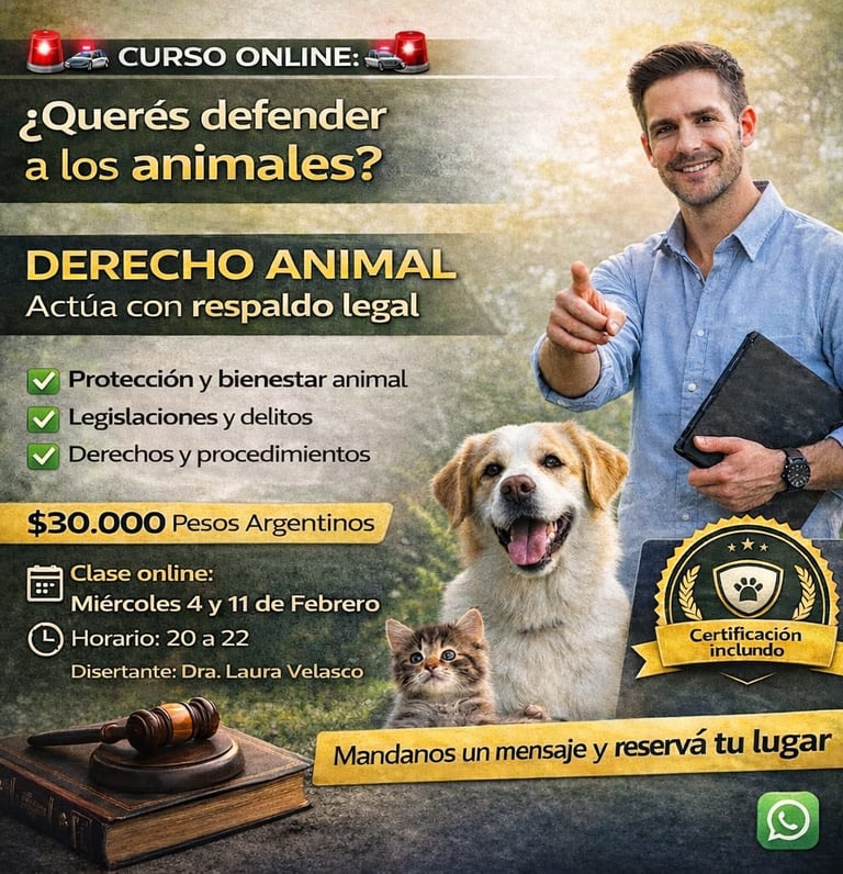 Sumate al Curso Online de Derecho Animal y conocé el marco legal actual que permite protegerlos de forma efectiva, actuar ante situaciones de maltrato y utilizar herramientas jurídicas concretas.