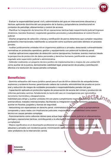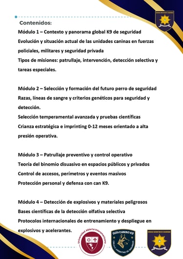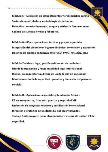 📚 Capacitación integral en blindaje legal y operatividad avanzada de unidades K9.