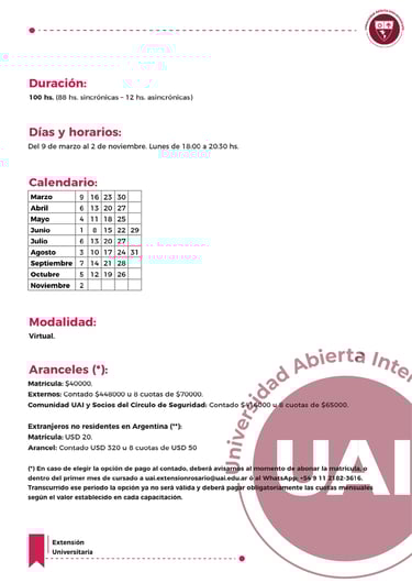 📌 Duración: 9 de marzo al 2 de noviembre (100 hs)