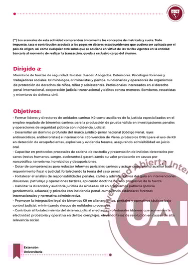 🎯 Formación dirigida a profesionales de seguridad, justicia, fuerzas armadas, organismos públicos y privados.