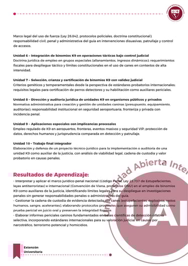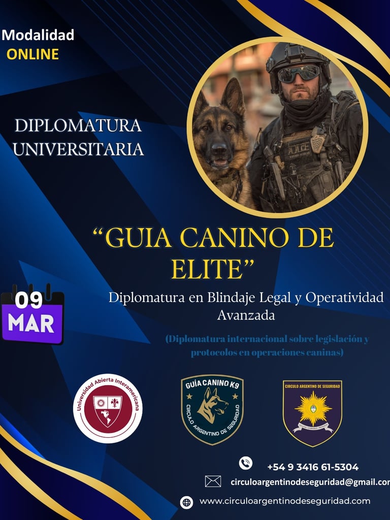 🐕🦺 Diplomatura Internacional sobre Guía Canino (K9) Organizada por el Círculo Argentino de Seguridad junto con la Universidad Abierta Interamericana.