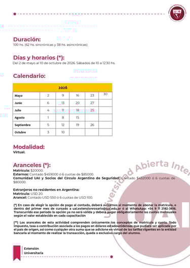 📌 Duración: 02 de mayo al 10 de octubre (100 hs)