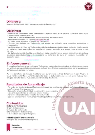 🎯 Formación dirigida a mayores de 18 años de todas las graduaciones de Taekwondo