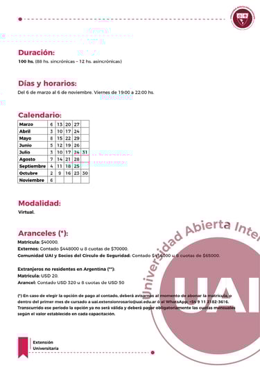 📅 Duración: Del 6 de marzo al 6 de noviembre (100 hs)