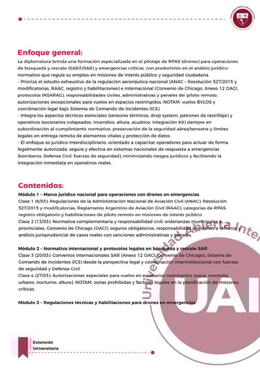 🚁 Diplomatura Universitaria en Legislación Nacional e Internacional de Emergencias y Pilotaje de Drones de Rescate